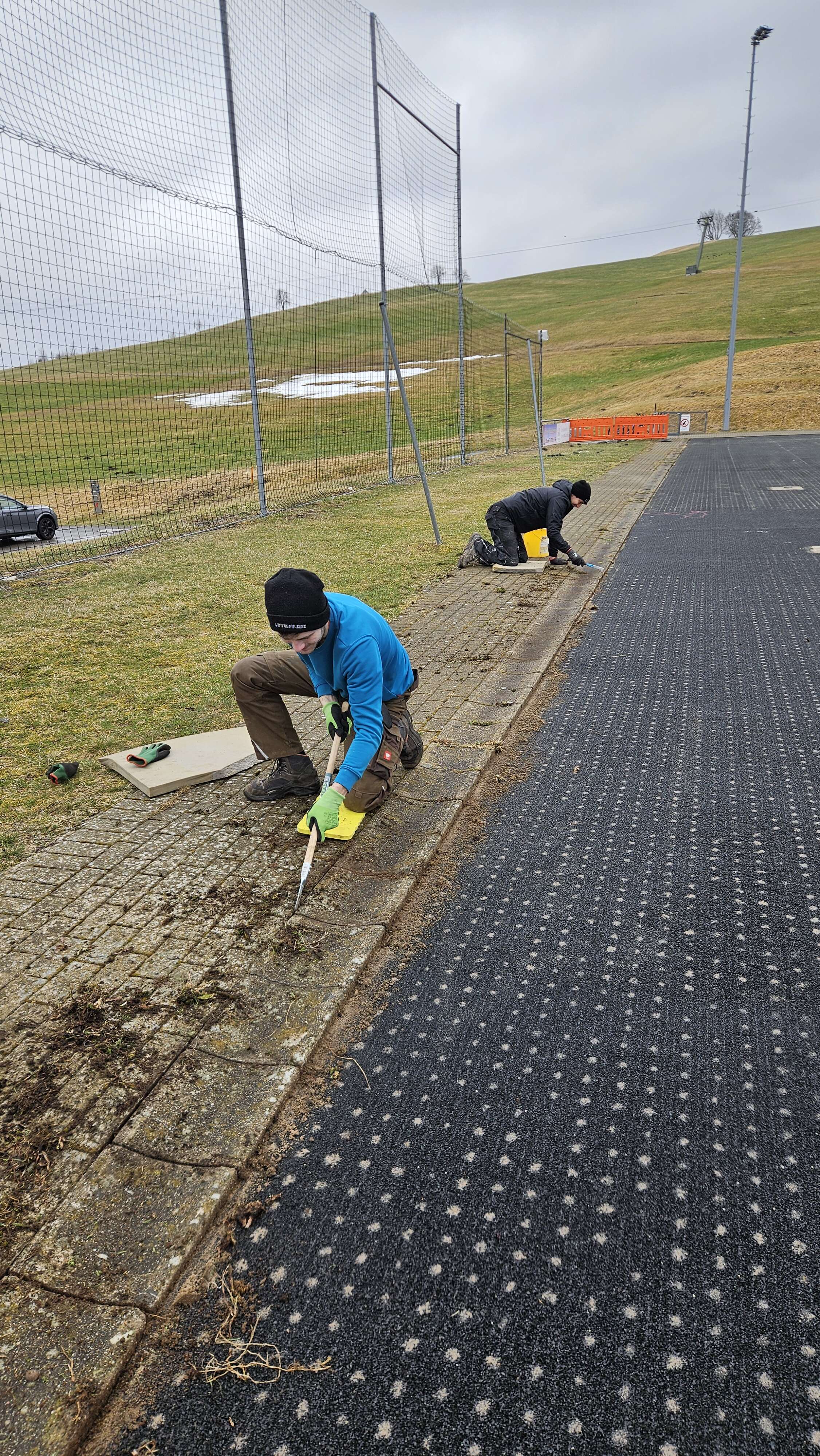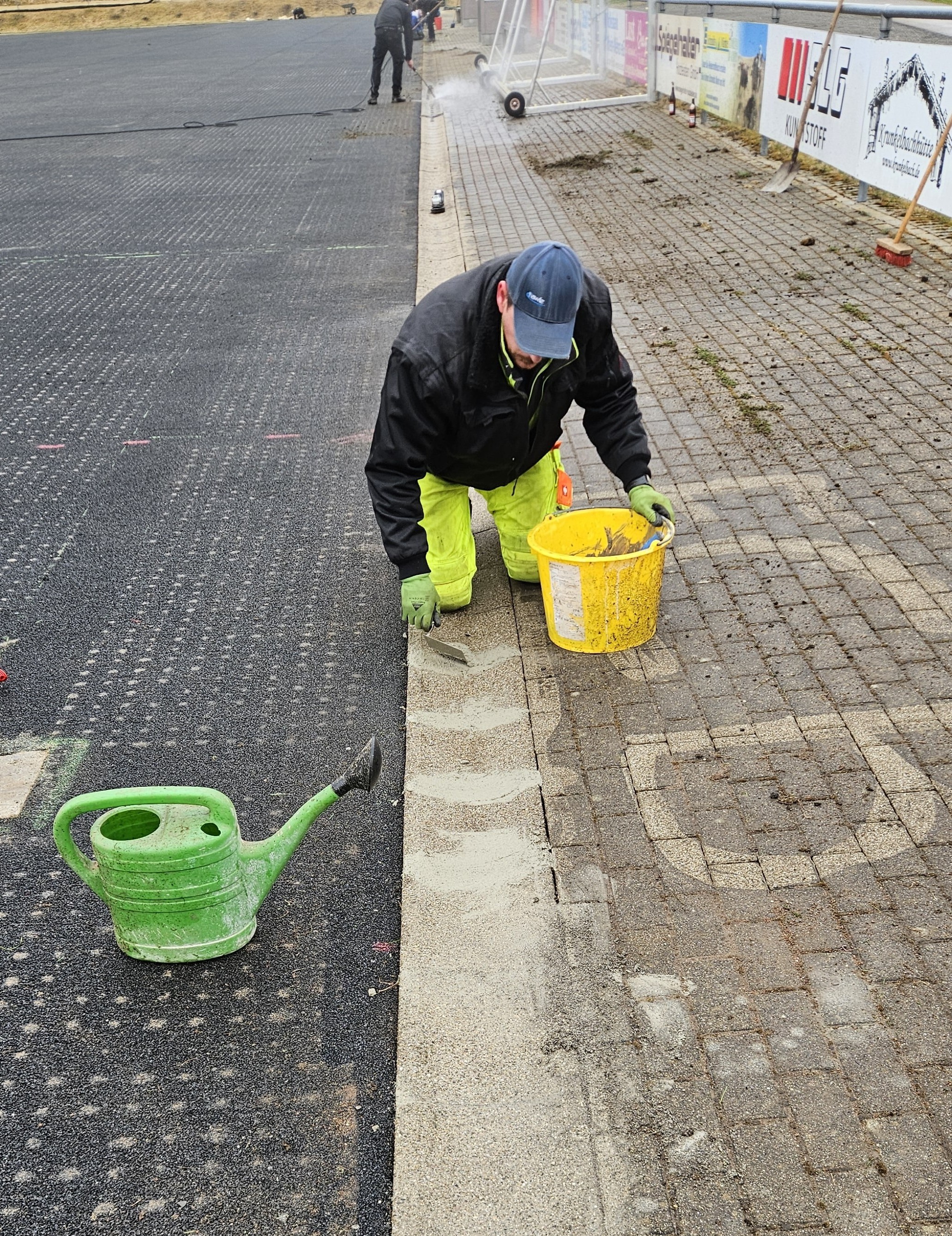 Derzeit wird an der Außenanlage unseres Sportplatzes intensiv gearbeitet. Die Rinnensteine werden gereinigt, neu ausgefugt und gestrichen, während der Pflasterbelag gesäubert und mit neuem Sand verfugt wird. Damit stellen wir sicher, dass die Außenanlage perfekt zu unserem neuen, modernen Platz passt und in frischem Glanz erstrahlt.
